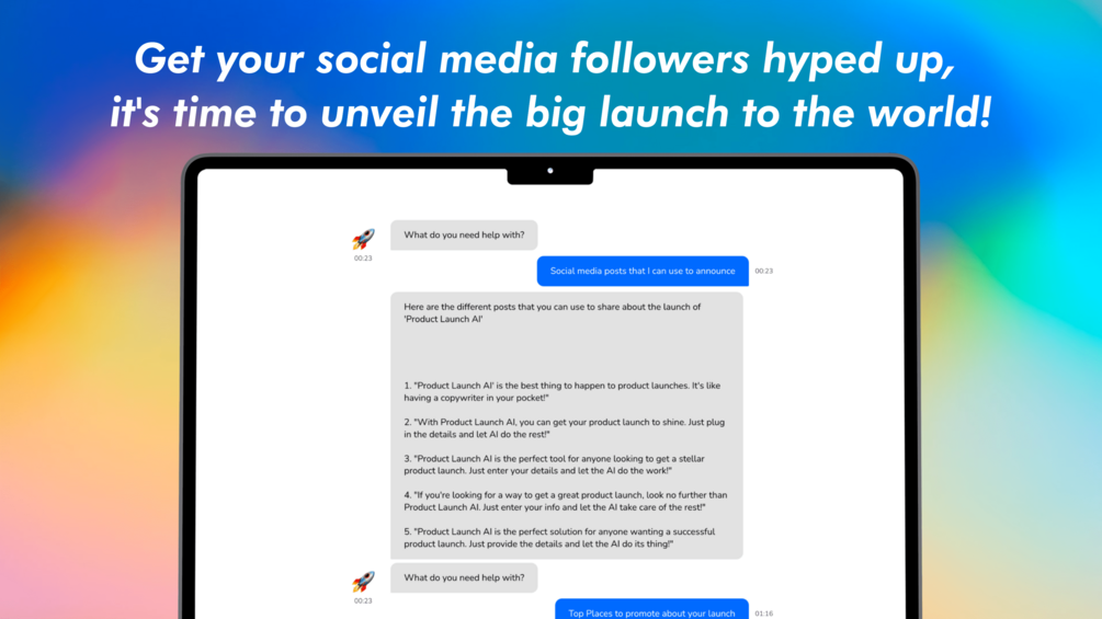 Want to save yourself from spending precious hours or $$$ on copywriters to get the word out about your Product Launch to the world? Product Launch AI is your conversational side-kick.